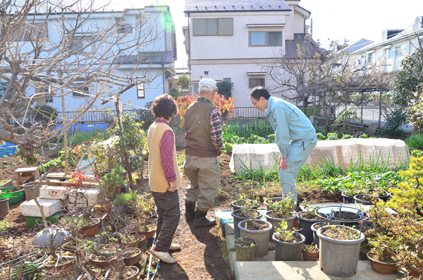 畑は主人の担当です。定年退職してから、好きな野菜を植えて、自分でこしらえた肥料を使って育てています。とってもおいしいのよ。